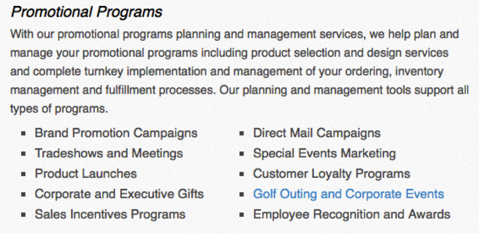 We see promotional product programs as a strategic part of our clients’ marketing mix, helping organizations boost brand recognition among target audiences at one of the lowest costs per impression of any inbound or outbound advertising channel.